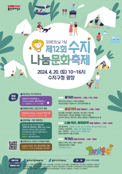 2012년부터 매해 운영된 수지나눔문화축제가 2024년에는 특별히 4월 20일 장애인의 날을 기념해 수지구청 광장에서 성대하게 개최된다.