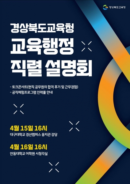행사는 경북교육 홍보영상과 토크콘서트 형태로 구성해 학교와 도서관, 교육지원청 등 다양한 기관에서 근무하고 있는 현직 공무원들의 합격 후기와 근무 경험을 생생하고 흥미롭게 전달할 예정이다.