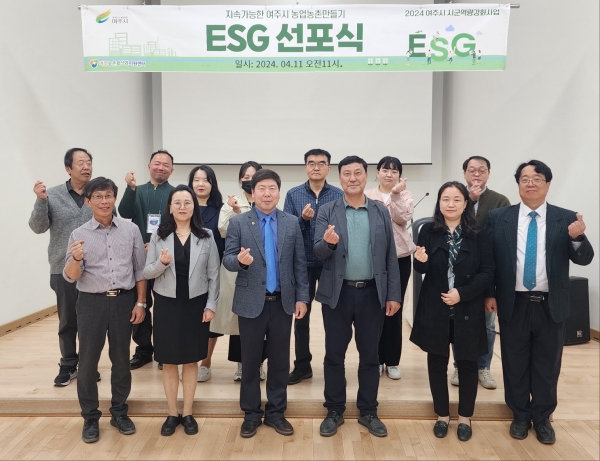 선포식은 지난 11일 여주농촌테마공원 농촌문화센터 2층 대강당에서 여주시 이용철 농업정책과장을 비롯한 관계자 20여명이 참석한 가운데 진행됐으며 선포식을 통해 본격적인 ESG 경영방침을 공표하고 여주시 농업농촌의 지속가능 성장을 이어갈 수 있도록 나설 계획이다.