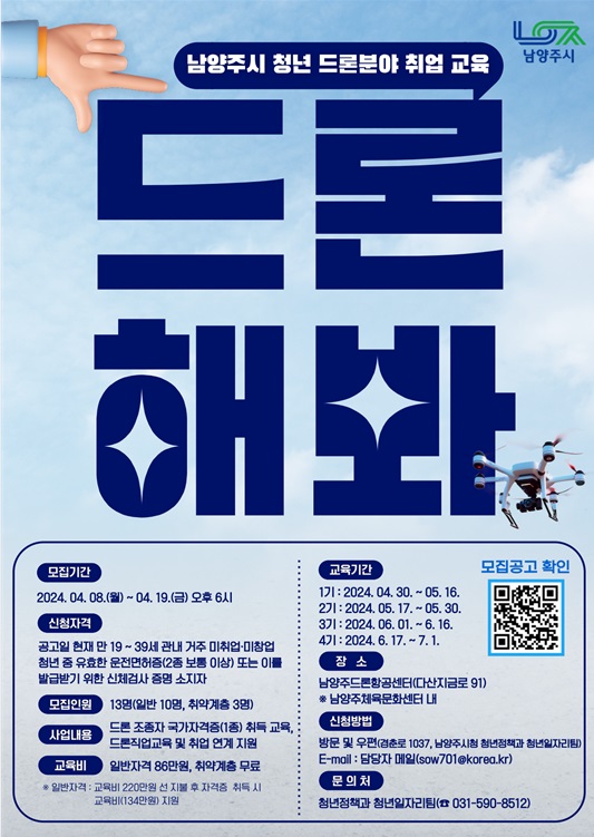 남양주시, ‘청년 드론분야 취업 교육 과정’ 오는 19일까지 참여자 모집