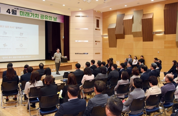월례행사로 진행하는 미래가치 공유의 날은 시장과 직원이 시의 발전적 비전과 우수사례에 대해 소개하며 중점적으로 추구해 나갈 미래가치에 대해 공유하는 자리다.