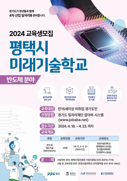 참가 대상은 반도체 분야 교육 및 취업을 희망하는 15세 이상 경기도민으로 평택시 주민에게는 면접 시 가산점이 부여된다.