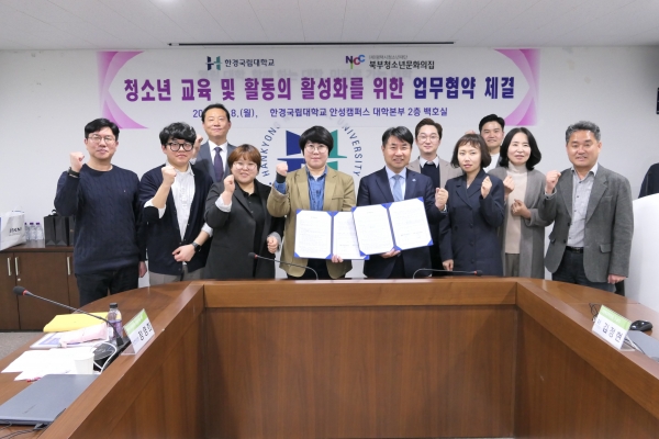 [금요저널] 평택시북부청소년문화의집은 지난 8일 청소년 사업과 지역사회 청소년 활동 운영 협조를 위한 업무협약식을 한경국립대 안성캠퍼스에서 진행했다.