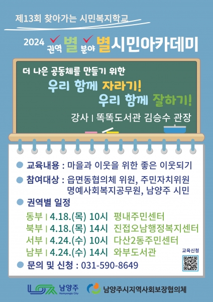 [금요저널] 남양주시지역사회보장협의체는 4월부터 9월까지 찾아가는 시민복지학교 ‘별별시민아카데미’를 운영한다.