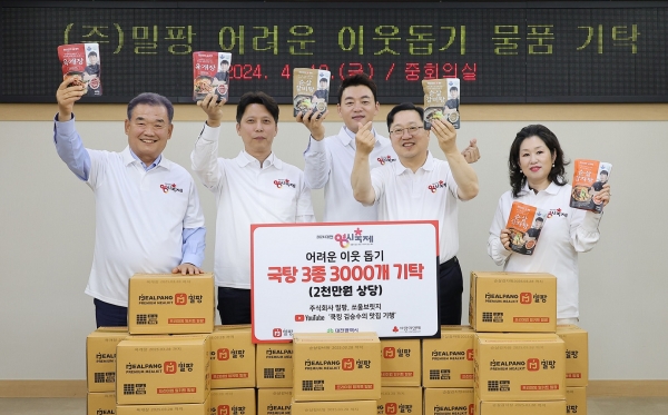 한편 이날 협약식에서는 ㈜밀팡과 공동기탁자 쏘울브릿지가 어려운 이웃을 위해 써달라며 대전사회복지공동모금회에 탕 종류 밀키트 3,000세트를 기탁하기도 했다.