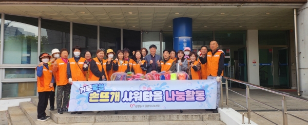 이번 행사에는 센터 회원뿐만 아니라 지역 주민들까지 자발적으로 참여해 따뜻한 사랑의 메시지를 담은 샤워타올 140개를 직접 만들었다.