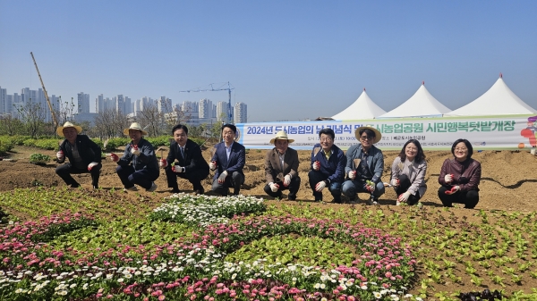 [금요저널] 시흥시는 도시농업의 날을 기념하고 시민공동체 활성화를 위해 ‘2024년 도시농업의 날 기념식 및 시민행복텃밭 개장’ 행사를 지난 13일 도시농업공원 배곧 텃밭나라에서 개최했다.
