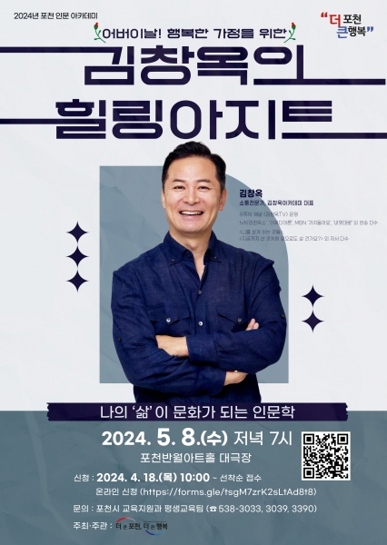 ‘포천 인문 아카데미’는 품격있는 인문도시 포천으로 나아가기 위해 시민의 인문학적 소양 증진과 지식 함양을 목표로 교육, 과학, 건강, 문학, 예술, 여행, 철학 등 시민의 일상생활과 밀접한 테마를 주제로 한 명사 초청 인문학 강연을 운영하는 사업이다.