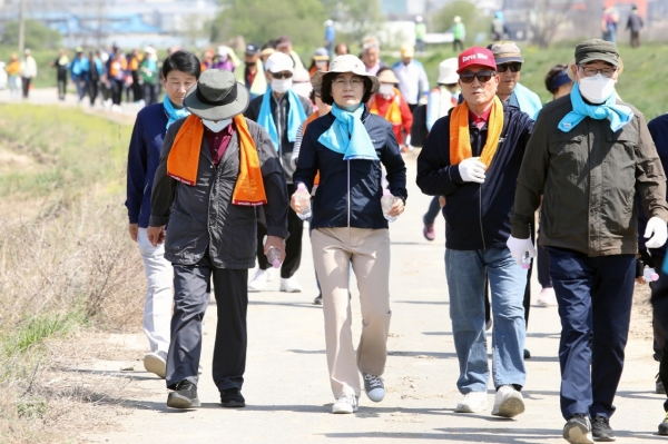 이번 행사에는 김보라 안성시장을 비롯, 지역 어르신 400여명이 참석했으며 보건소 전문강사로부터 올바른 걷기 방법 강습과 간단한 준비체조 후 대림동산 축구장에서 한천변 산책코스를 한바퀴 돌아 다시 대림동산 축구장으로 돌아오는 약 2km 구간을 걸었다.