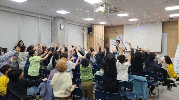 모현도서관, 왕산초 학생 초청해 버블공연 선보여
