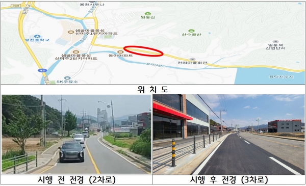 이번 지방도 318호선 도로개선공사 사업은 경기도 용인시 이동읍 천리 123-7번지 일원의 극심한 교통정체를 해소하기 위해 도로를 2차로에서 3차로로 차로를 확장하는 사업이다.