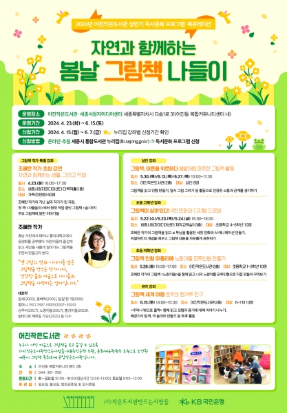 [금요저널] 세종시립도서관이 임수경 동화 작가, 조혜란 그림책 작가, 이정록 시인 등을 초청해 시민 대상 독서문화 프로그램을 운영한다.