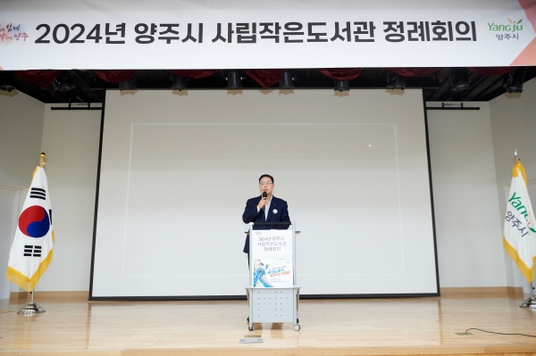 [금요저널] 강수현 양주시장이 17일 오전 관내 옥정호수도서관 3층 예술극장에서 개최된 ‘2024년 사립작은도서관 제1차 정례회의’의 참석하고 관계자들을 격려했다.