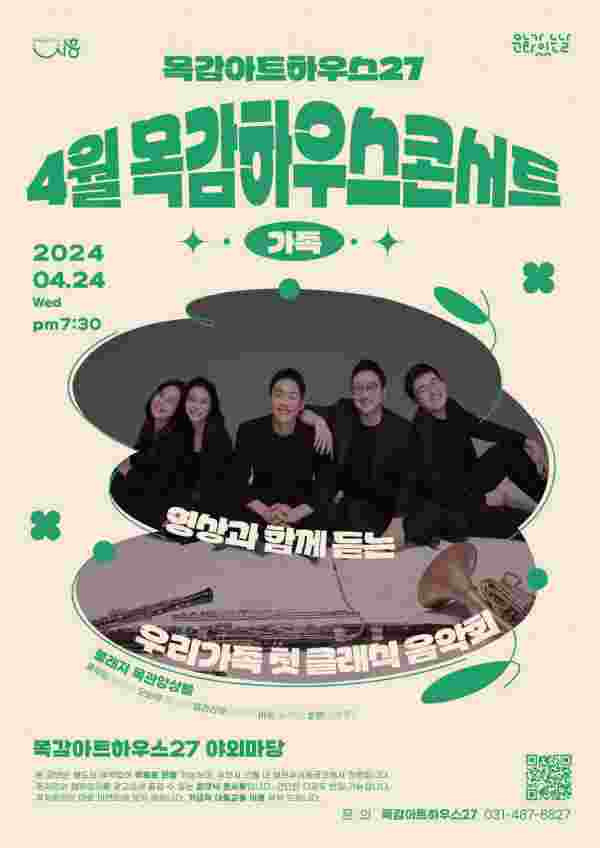 특히 목감아트하우스27 야외마당에서 진행되는 이번 공연은 돗자리와 캠핑 의자를 갖고 편안하게 즐기는 소풍 콘서트 형태로 개최돼 자유롭고 부담 없는 분위기 속에서 가족들과 편안하게 공연을 즐길 수 있도록 기획됐다.