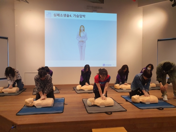 교육은 응급상황 발생 시 신속하게 대처할 수 있는 능력을 향상할 수 있도록 심폐소생술 이론과 실습으로 진행됐다.