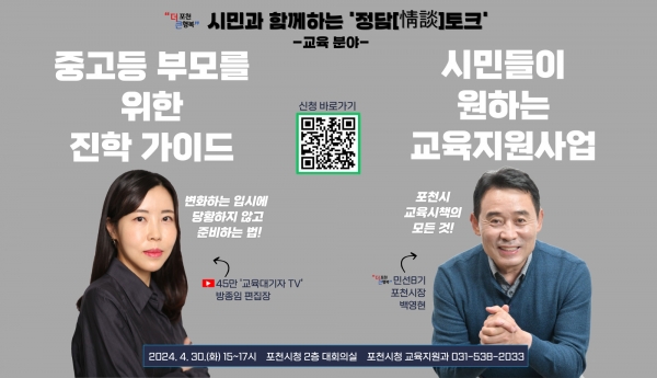 백영현 포천시장은 “입시 등 교육계의 뜨거운 주제를 담은 강연인 만큼 학생과 학부모의 걱정과 고민을 덜어주는 계기가 되길 바란다”며 “‘정담토크’를 통해 현장에서 시민들의 자유롭고 다양한 의견을 공유할 수 있는 소통의 장이 되기를 기대한다”고 말했다.