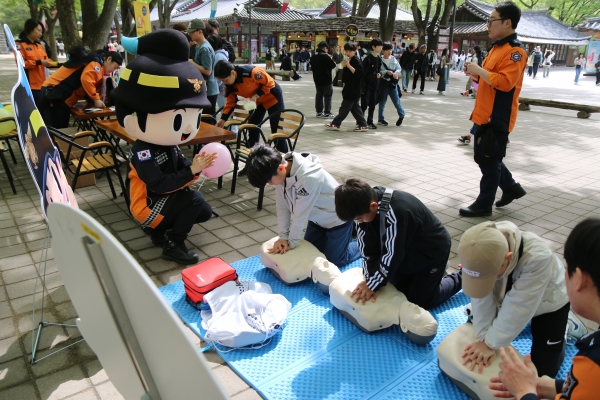 “가족안전 119체험마당”은 ▲심폐소생술, 기도폐쇄 등 응급처치 방법 ▲주택용소방시설 및 불나면 살펴서 대피 등 화재안전교육 ▲온가족 소방관 직업체험 ▲불조심 포스터 전시 ▲영웅이와 함께하는 포토부스 등 안전에 대해 오감을 활용하는 참여형 교육으로 진행됐다.