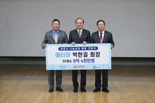 이날 행사는 박한길 애터미 회장이 지난해 세종시에 기탁한 8억 4000만원을 세종시 관내 사회복지시설 등 각 시설·기관에 배분하기 위해 마련됐다.