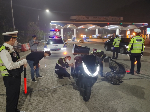 [금요저널] 부평구가 지난 16일과 18일 원적산터널 입구에서 관계기관과 함께 불법 이륜차에 대한 주야간 합동 단속을 실시했다.
