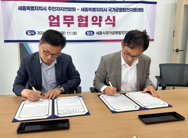 [금요저널] 세종시 국가균형발전지원센터와 주민자치연합회는 4월 19일 세종시 국가균형발전지원센터에서 업무협약을 체결했다.
