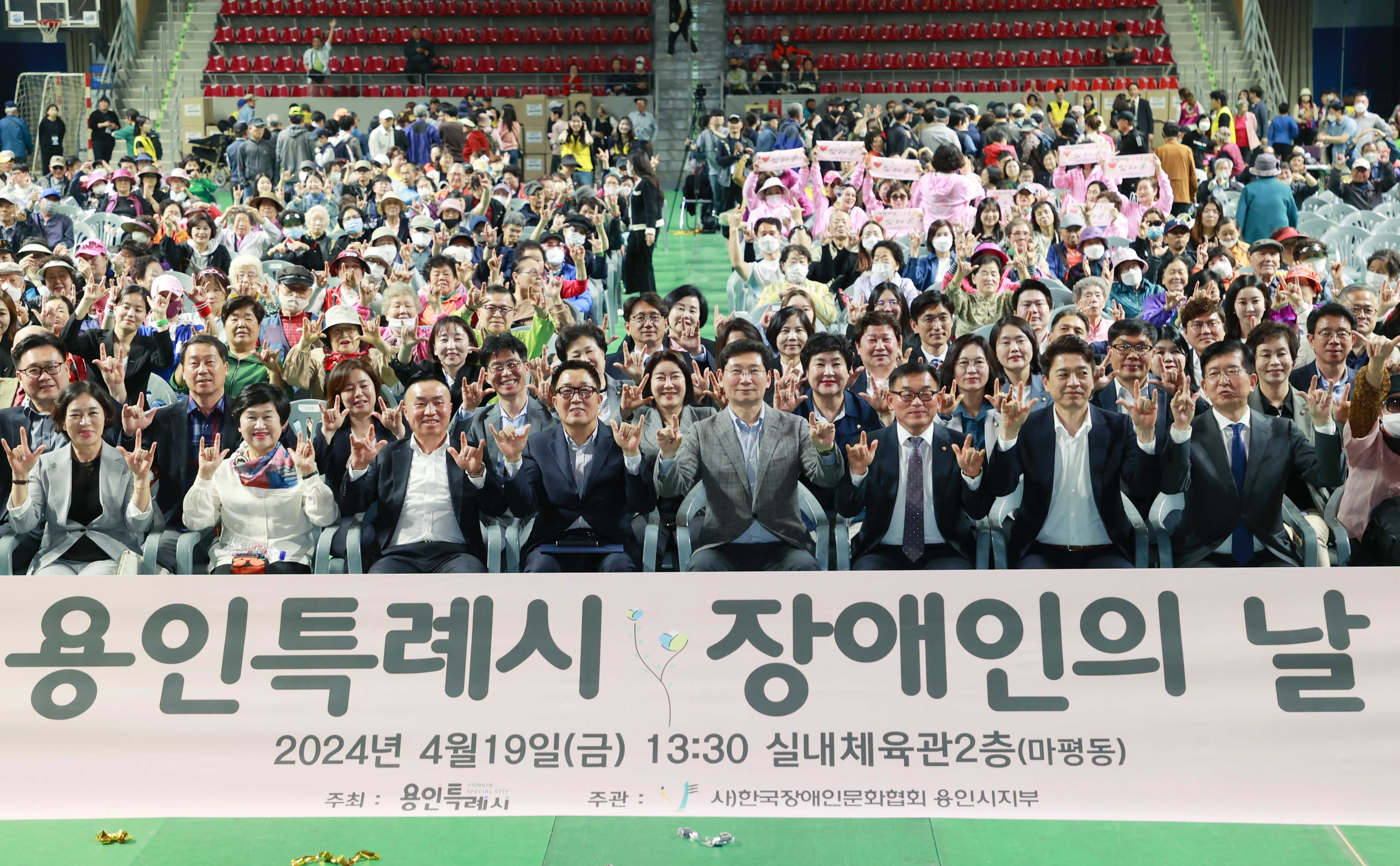 이 시장은 “오늘 이 자리는 장애인과 비장애인 구분 없이 서로 소통하고 존중하면서 용인특례시를 따뜻한 생활 공동체로 만들어 가기 위해 다짐하는 자리”라며 “장애인이 겪고 있는 불편을 덜어주기 위해 지난해보다 예산을 늘려가며 최선을 다해 지원하고 있다”고 말했다.