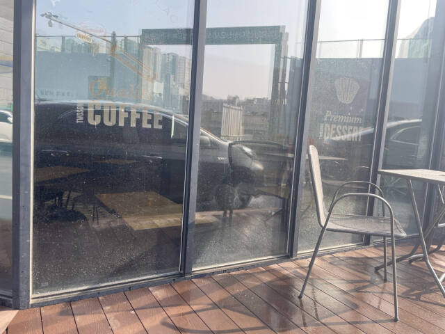 현장 확인 결과 공사장과 인접한 건물을 소유 중인 A씨의 경우 건물 바로 앞에 공사장 입구가 있어 도로 위 잔돌의 비산 등으로 1층 가게 외벽 유리창, 외부 데코인테리어의 오염이 심각하고 가게 안에 비치된 의자도 흙먼지가 수북이 쌓이고 있다. 이로 인해 손님 수가 감소하는 등 영업 피해를 입었다는 게 A씨의 설명이다.