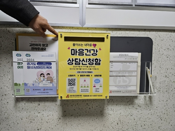 [금요저널] 안성시 정신건강복지센터자살예방센터는 1인 가구 정신건강 지원 사업 중 하나로 청년, 고령 1인 가구 비율이 높은 안성 LH아파트 공용구역에 정신건강 상담을 신청할 수 있는 “마음 건강 상담 신청함”을 설치해 시범 운영 한다.