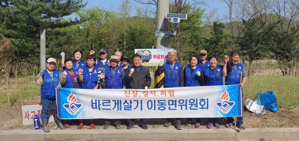 한편 바르게살기 이동면 위원회는 무궁화 심기 행사, 환경정화 활동, 취약계층 깍두기 나눔 봉사, 산불예방 캠페인 등 마을의 발전과 지역 공동체 활성화를 위한 다양한 활동을 펼치고 있다.