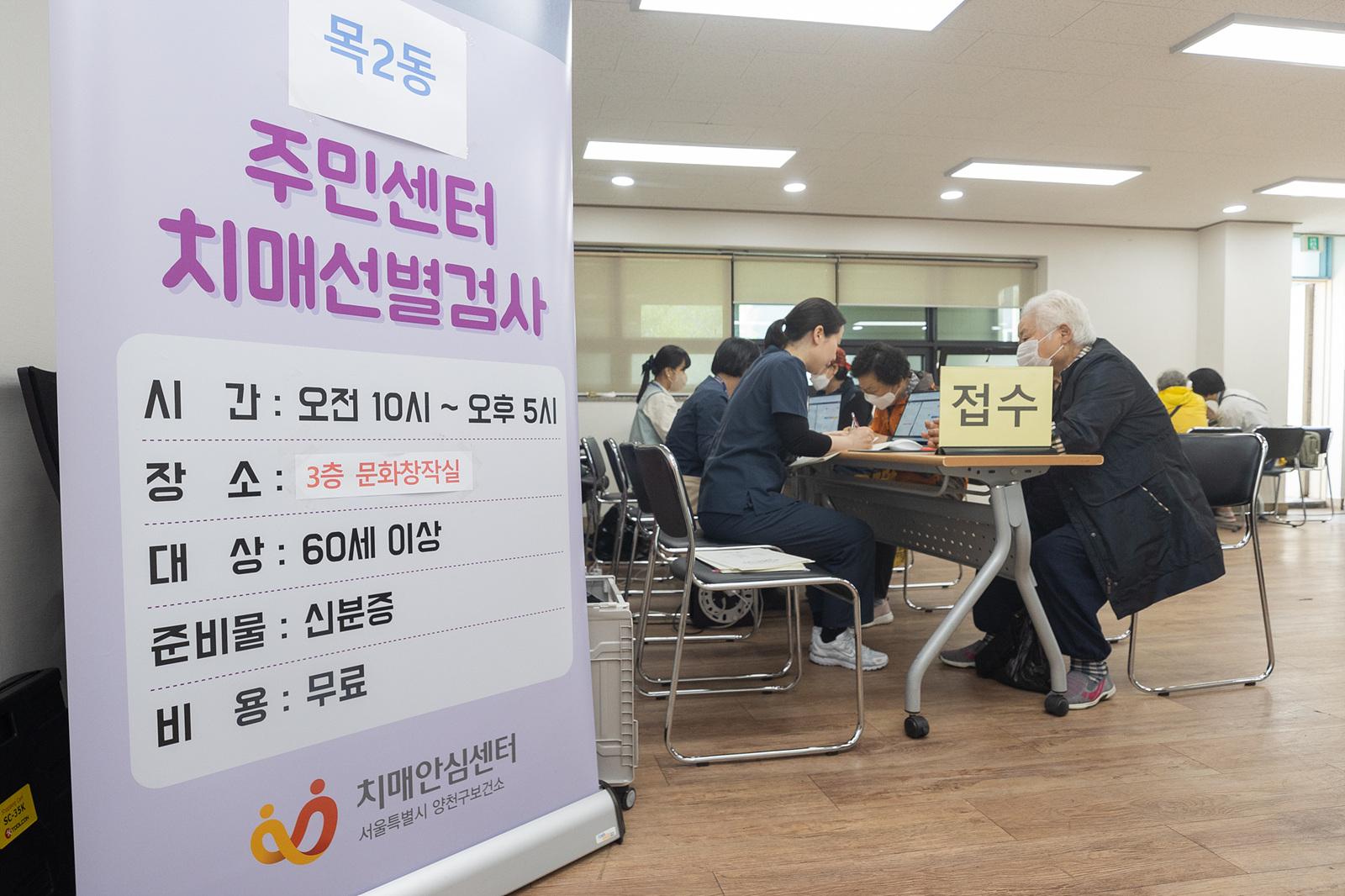 우선 1차 치매 인지선별검사에서 인지저하가 의심될 경우 ▲양천구 치매안심센터의 무료 정밀검사(신경심리검사, 신경과 전문의 상담)를 실시한다. 이후 2차 정밀검사에서 치매 의심이 확인되면 ▲혈액검사 및 MRI 등 감별검사를 위해 전문 의료기관과 연계하고 특히 저소득층에는 검사비도 일부 지원할 계획이다.