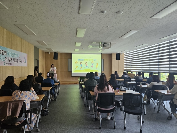 이번 교육은 영유아의 건강관리 및 올바른 건강 습관 형성에 보육교사 역할의 중요성을 알리고 영양, 아토피, 구강, 금연 등 통합 교육을 실시해 생활터 내에서 올바른 건강지도를 하도록 했으며 건강지도에 활용되도록 통합교육교재를 배부했다.