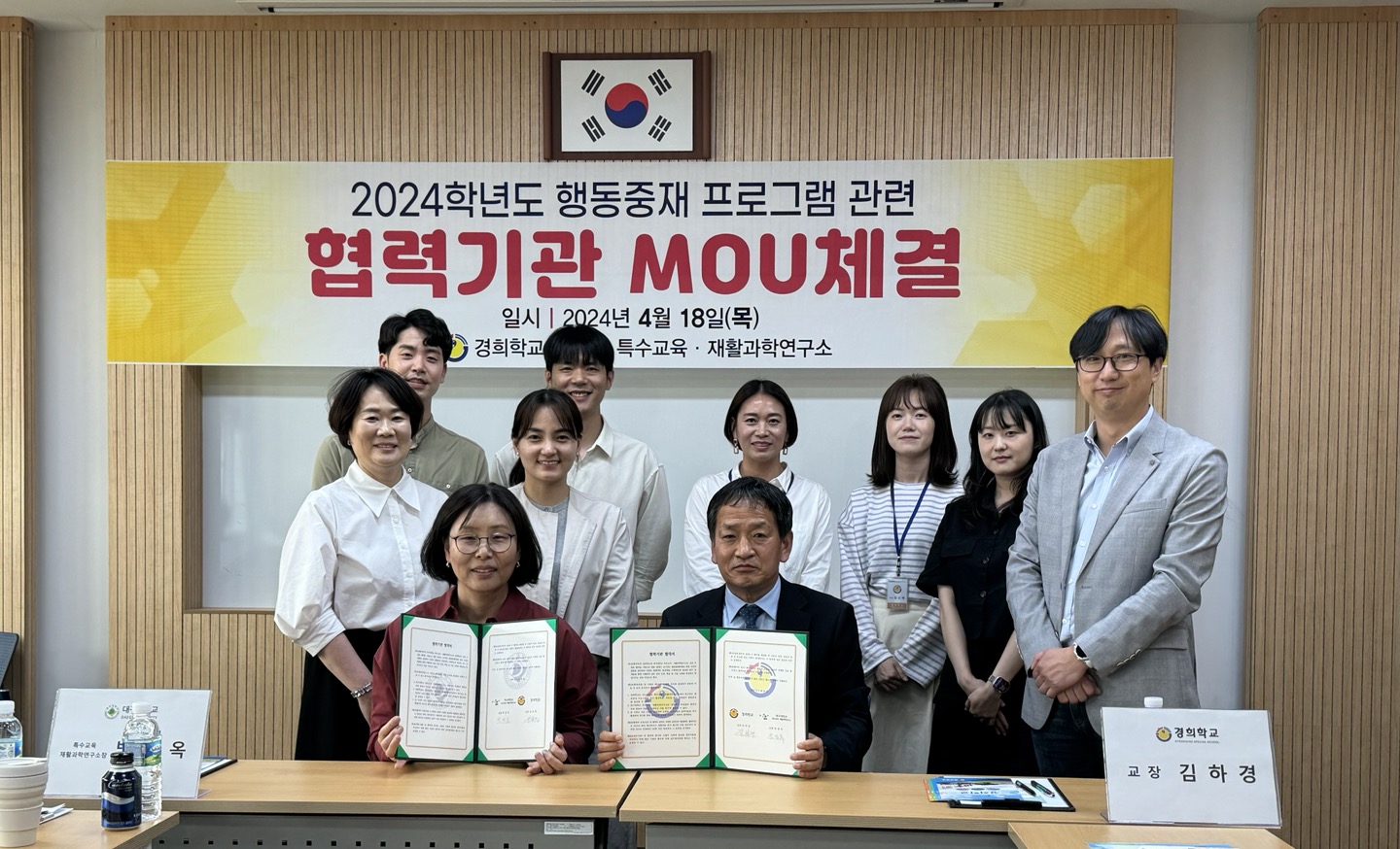 경희학교(교장 김하경)는 지난 4월 18일(목) 본교 연수실에서 2024학년도 행동중재 프로그램 관련 업무협약을 대구대학교특수교육·재활과학연구소와 체결하였다.