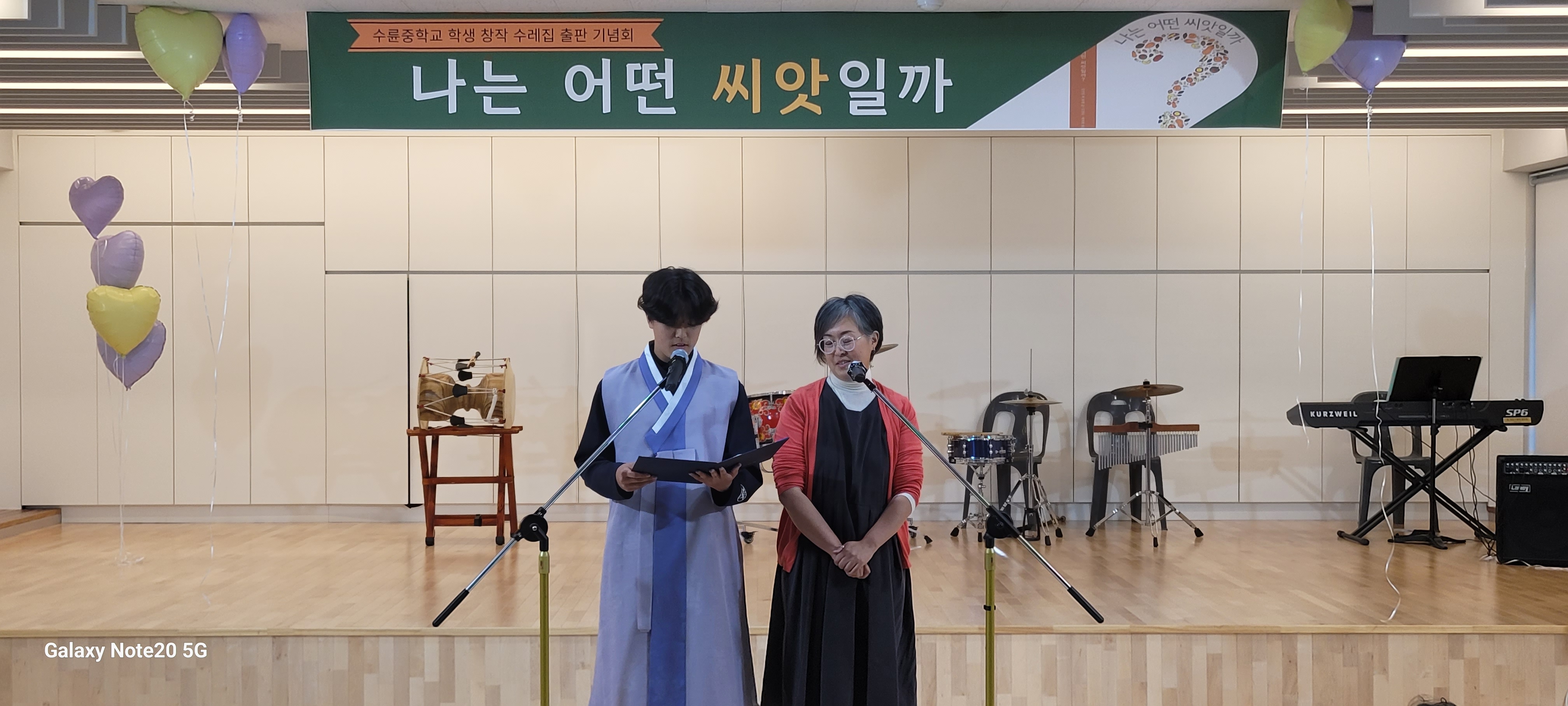 수륜중학교의 창작 번역 시집의 소담스런 열매를 나누기 위하여 교육, 문화, 지역 여러 단위의 소중한 분들을 초청하여 출판을 기념하는 문화행사를(2024. 4. 22.(월)) 개최하였다.