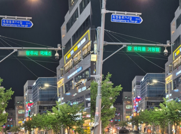 홍보문구는 ‘주정차 금지구역이다’ 이후 ‘양주시의 국제스케이트장 유치를 기원한다’를 1~2분 내 지속적으로 표출하고 있다.