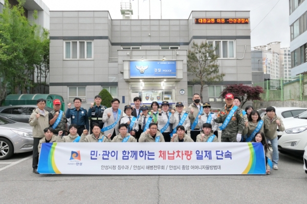 [금요저널] 안성시는 지난 23일 안성시 해병전우회 및 안성시 중앙 어머니 자율방범대와 체납차량 단속 업무지원 협약을 체결하고 야간 체납차량 일제단속을 벌였다.