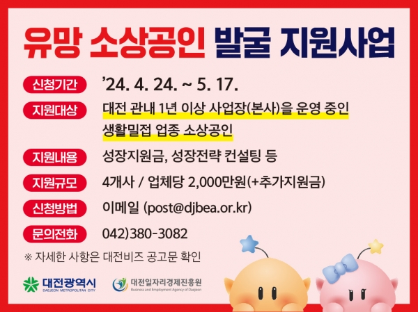 신청을 원하는 소상공인은 대전시 중소기업지원 포털 대전비즈에서 공고문을 확인하고 이메일로 신청하면 된다.