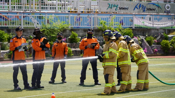 대회는 4인조법, 구조 기술, 외상환자 평가, 심폐소생술, 소방호스 전개 및 회수의 5개 경연 종목으로 진행됐다.