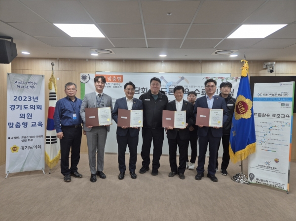 [금요저널] 경기도의회 도시환경위원회 김상곤 부위원장은 25일 경기도의회 의원 맞춤형 교육으로 진행된 “드론산업의 이해와 실전 드론” 수료인증식과 드론산업 육성방안 모색을 위한 정담회에 참석했다.