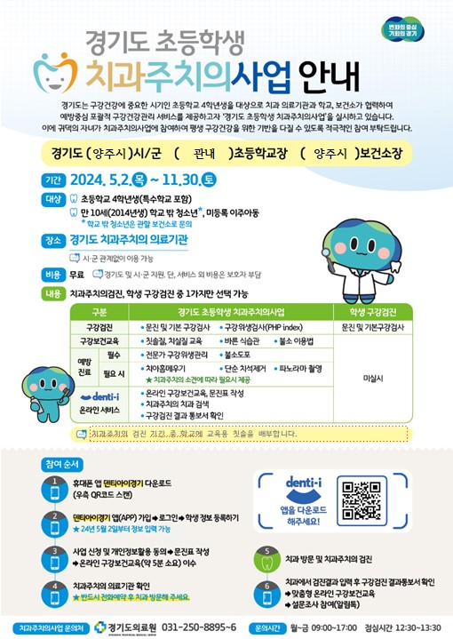 [금요저널] 양주시 보건소는 오는 5월 2일부터 11월 29일까지 2024년 경기도 초등학생 치과주치의 사업을 운영한다고 밝혔다.