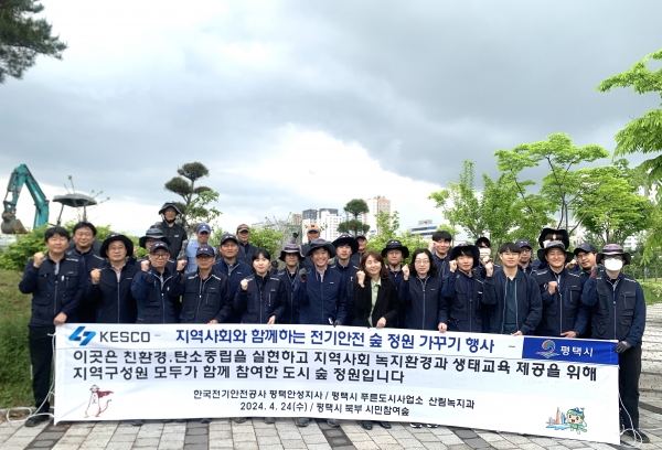 ‘전기안전 숲정원’은 평택지역에 부족한 녹지공간을 제공하면서 전기안전의 중요성을 홍보하기 위해 지난 2023년 4월부터 한국전기안전공사 평택안성지사와 지역사회가 함께 조성하고 평택시에 기부채납한 도시숲이다.