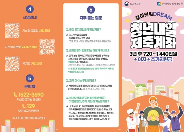 대상자로 선발된 청년은 저축 기간 내 근로활동을 유지하고 자립역량교육 이수 및 자금 사용계획서를 제출하면 최대 1,440만원과 이자 등을 받는다.