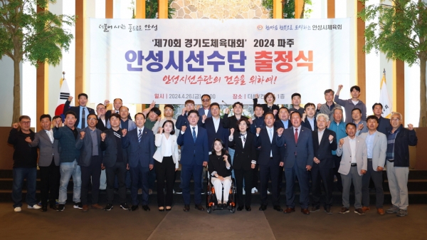 [금요저널] 오는 5월 9일부터 11일까지 3일간 파주에서 개최되는 ‘제70회 경기도체육대회’ 안성시 선수단 출정식이 지난 26일 THE AW컨벤션에서 개최됐다.