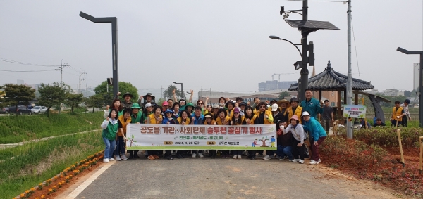 [금요저널] 안성시 공도읍 기관·사회단체는 지난 26일 서안성체육센터 주변 승두천 산책로에서 ‘승두천 아름답게 꾸미기’를 위한 간담회 개최 및 꽃심기 행사를 실시했다.