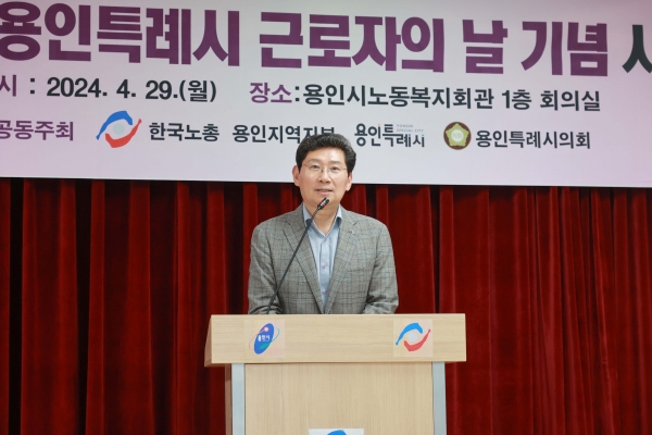 이날 행사엔 이 시장을 비롯해 윤원균 용인특례시의회 의장, 한국노총 김연풍 경기지역본부 의장과 이상원 용인지역지부 의장, 유공자 등 관계자 80여명이 참석했다.