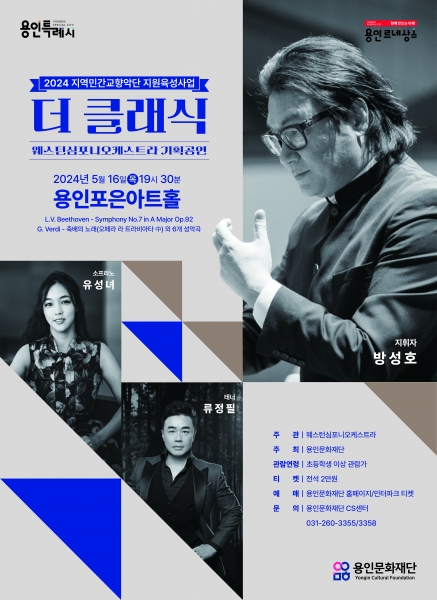 이번 공연은 용인문화재단이 민간 오케스트라의 지역 내 활동을 활성화하고 양질의 공연을 시민들이 보다 쉽게 접할 수 있도록 2023년부터 시작된 ‘지역 민간 교향악단 지원 육성 사업’의 일환으로 진행되는 공연이며 ‘웨스턴심포니오케스트라’는 2023년에 이어 올해도 선정되어 ‘더 클래식’이라는 이름으로 베토벤 교향곡 제7번과 국내 유명 성악가들과 함께 오페라, 뮤지컬 등의 다양한 곡을 연주한다.