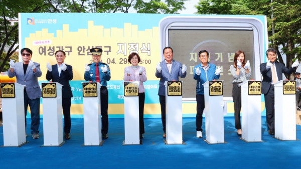 [금요저널] 안성시는 지난 29일 대덕면 내리 25호 공원에서 국내 최초로 여성가구 안심특구 지정식을 개최했다.