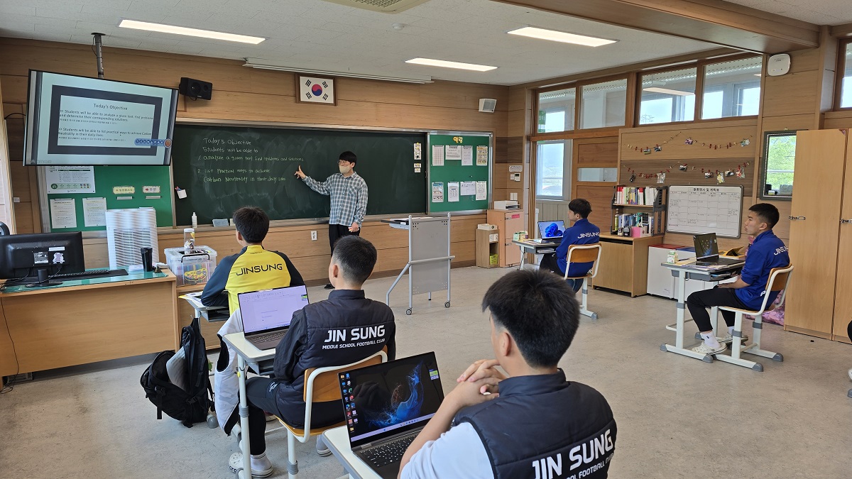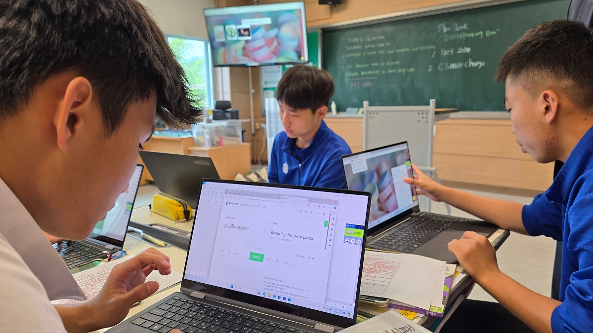 청송군 진보면 진성중학교(교장 이상훈)는 4월 30일(화) 본교 3학년 1반 교실에서 (영어과) 탄소중립과 에듀테크를 활용한 PBL 환경 수업을 실시하였다.