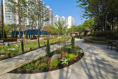 이를 위해 도비 2억 5000만원을 확보해 화초류 22종과 관목, 교목을 식재해 도심형 쉼터와 마을정원을 조성했다.
