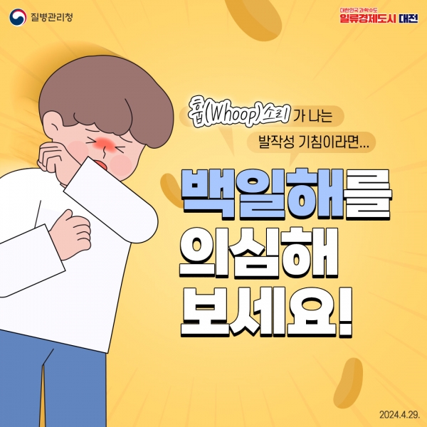 [금요저널] 대전시는 최근 백일해 환자가 늘어남에 따라 시민들에게 호흡기 감염병 주의와 예방접종 및 예방수칙 준수를 당부했다.