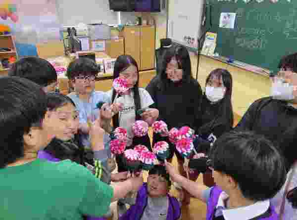 이번에 진행된 찾아가는 환경 프로그램은 학생 맞춤형 교육복지 통합지원을 진행하고 있는 지장초, 자란초, 은혜중의 각 학교 교육복지실에서 동아리 친구들과 함께 자원봉사와 환경에 대한 이야기를 나누고 업싸이클링 공예 활동으로 양말목을 활용한 카네이션 꽃브러치와 안마봉을 만들어 5월 가정의 달을 맞아 부모님과 선생님께 전달해드리는 계획으로 활동이 진행됐다.