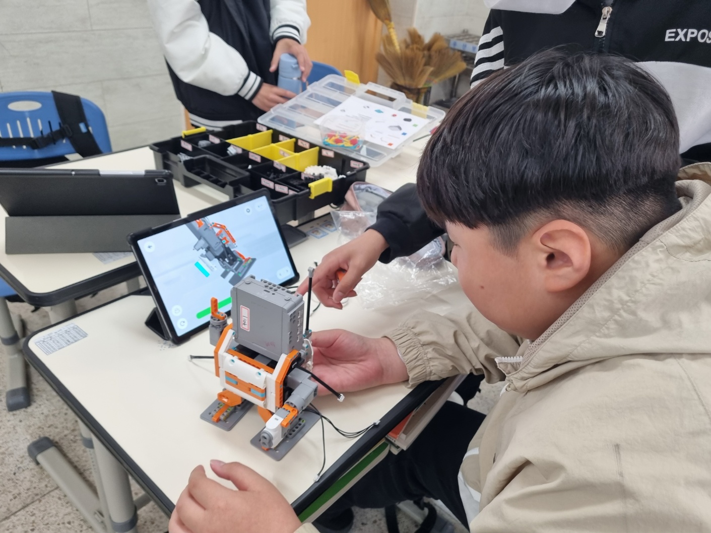 마지막 날은 머지않은 미래에 AI가 세상을 바꾼다고 해서 기대되면서도 약간은 불안한 이때, 비전드림교육원의 협조로 미래 유망 직업인 로봇공학자 체험을 했다. 패드를 사용해 각자 앱을 깔고, 춤추는 아스트 로봇, 유키트 어드벤져, 트랙봇 등의 로봇을 직접 코딩하고 제작해서 서로 응원하고, 모둠별로 배틀을 하면서 진지하게 경쟁하는 모습이 보기에 좋았다.